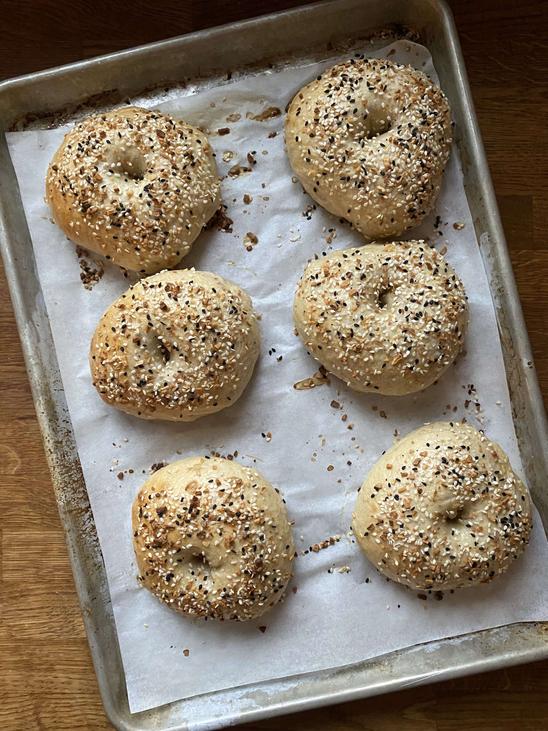 These bagels are inspired by New York style bagels, made with sourdough and using ingredients you already have.