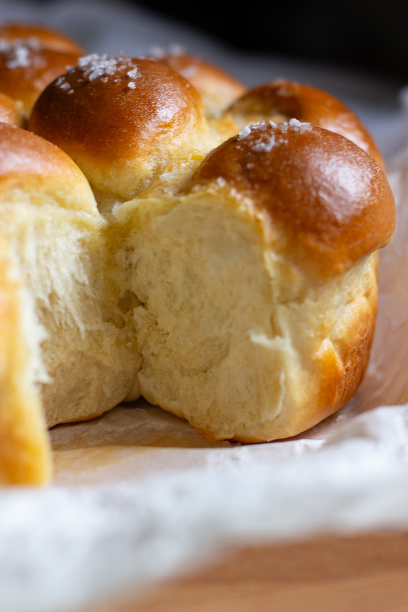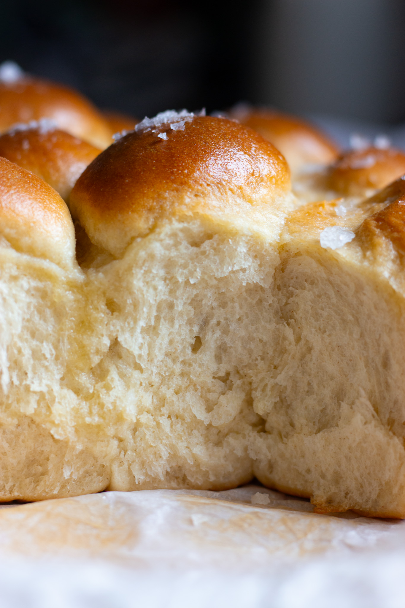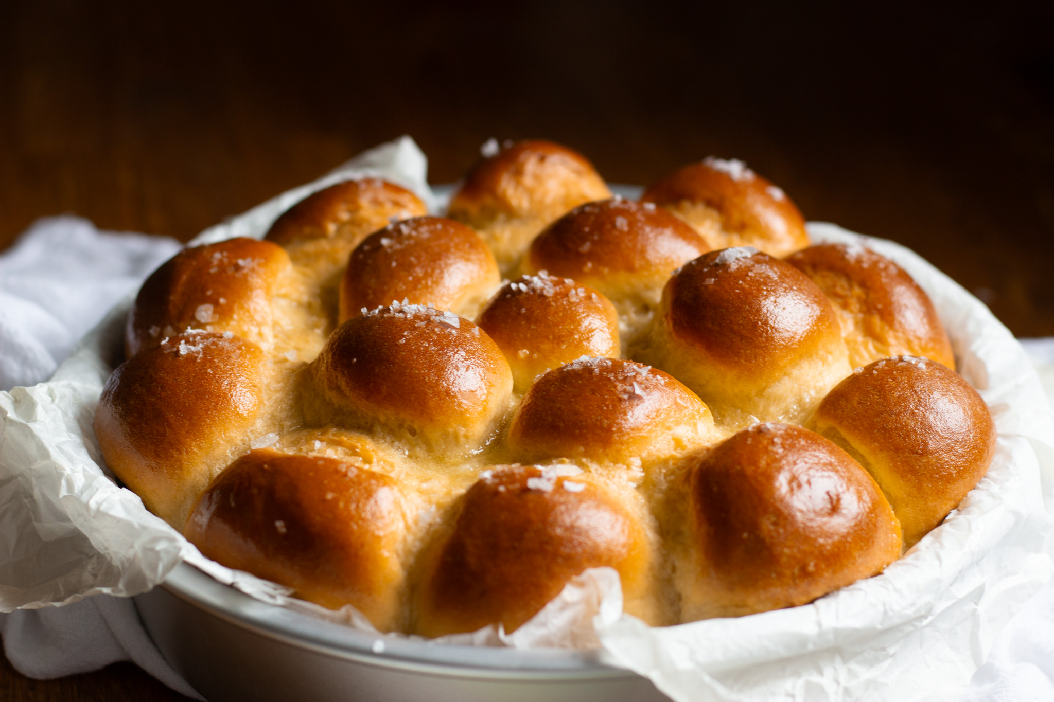 If you prefer an all-around robust roll, divide your dough into 15 pieces rather than 16, and arrange in a 5 x 3 grid in a buttered 9 by 13-inch pan, and start checking for doneness at the 30-minute mark.