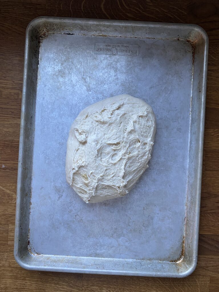 This is a VERY nice dough to work with because it’s not overly wet, and the olive oil in it helps to prevent it from sticking. If you’re new to sourdough or bread baking, or you’re wary of sticky dough, you will love this one!